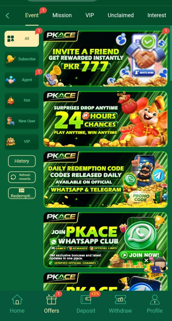 - Fast Cash Withdrawals: PKAce Game supports quick withdrawals through JazzCash and EasyPaisa, allowing Pakistani users to access their earnings safely and without delays.